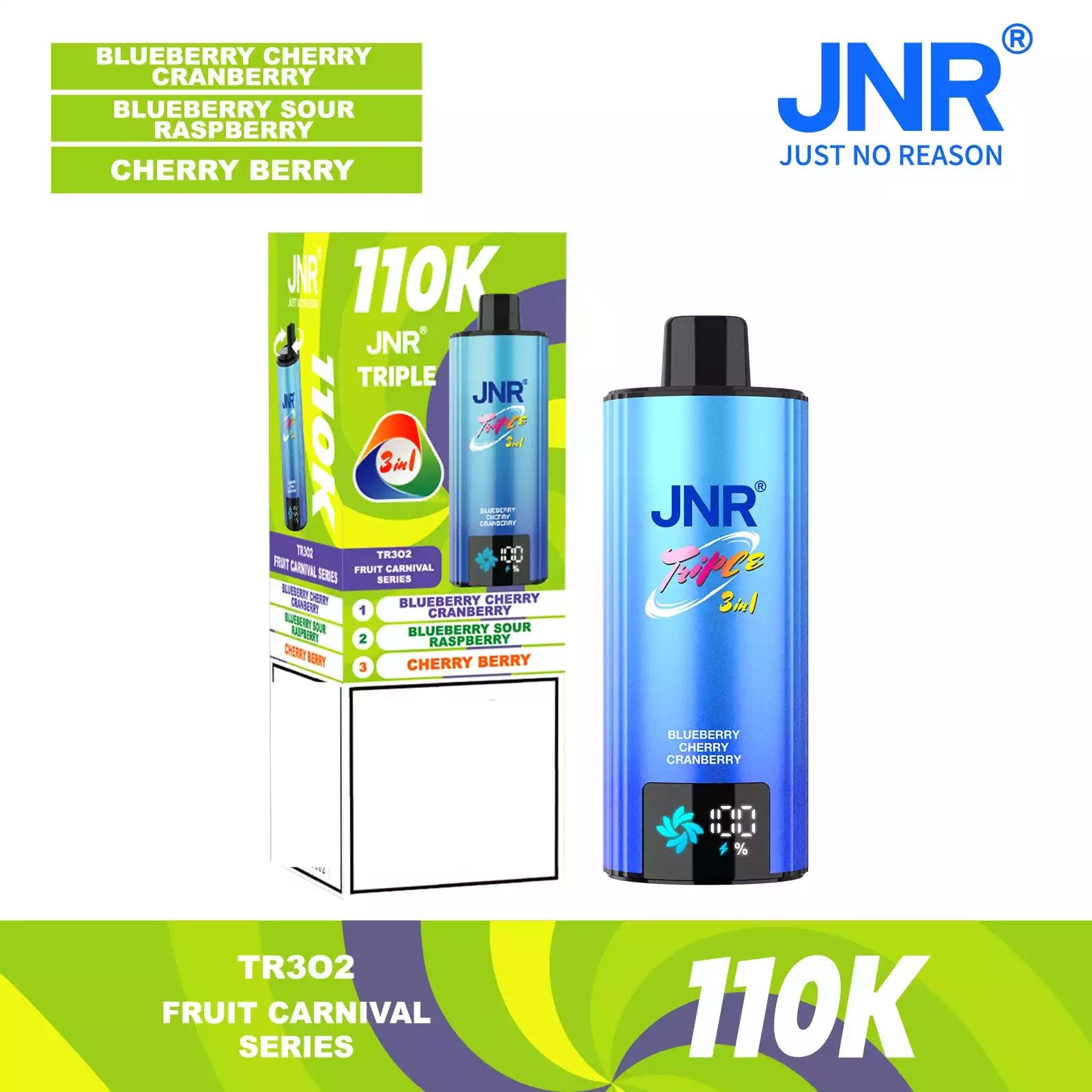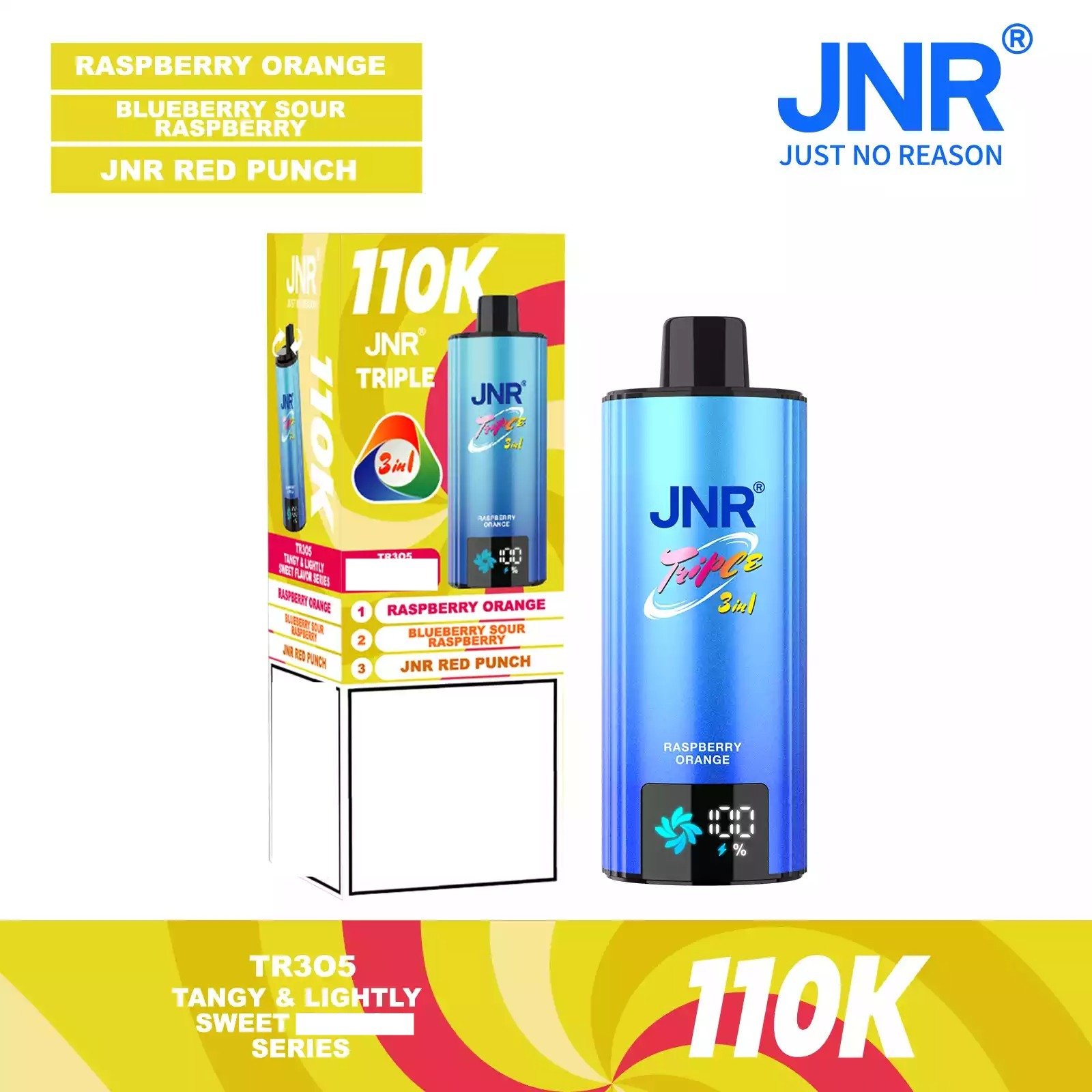 JNR TRIPLE 3 IN 1 110000 Puffs 3 Separate Adjustable Dual Mesh Coil Disposable Vape