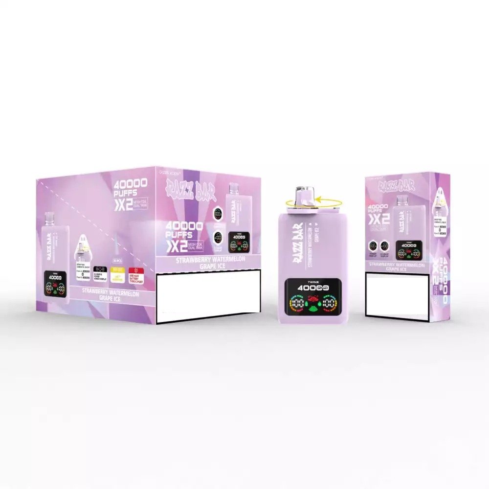 RAZZ BAR 40000 Puffs, an authentic disposable vape engineered for bulk purchase, features 40,000 puffs, adjustable vape strength (2% or 5%), a rechargeable 650mAh battery with Type-C port, dual tank & mesh coil technology, and 10 unique double taste combinations to elevate the vaping experience.