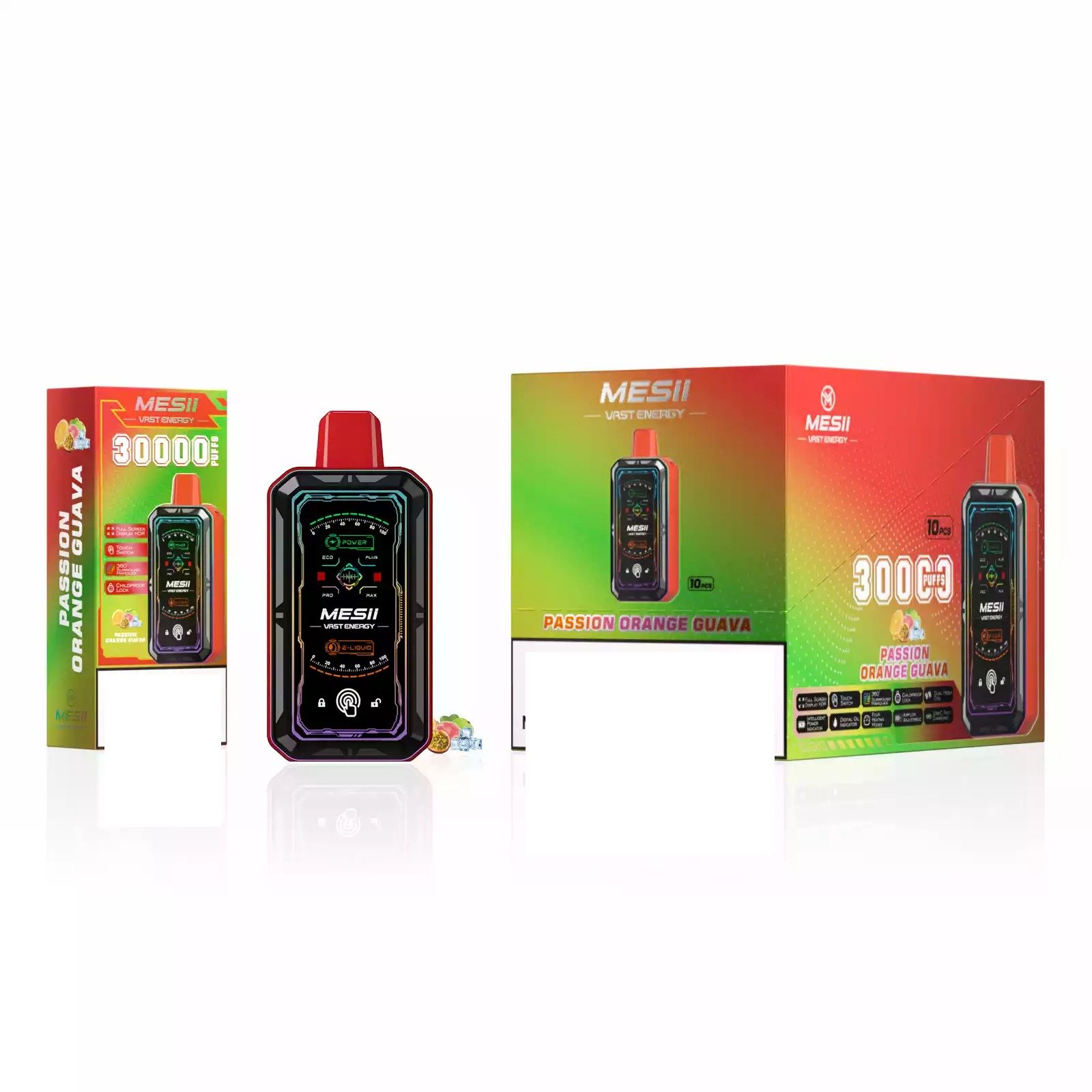 MOQ av MESII VAST ENGERGY 30000 Puffs 360°LED Light Rechargeable Disposable Vapes er 10 stk (1 eske).